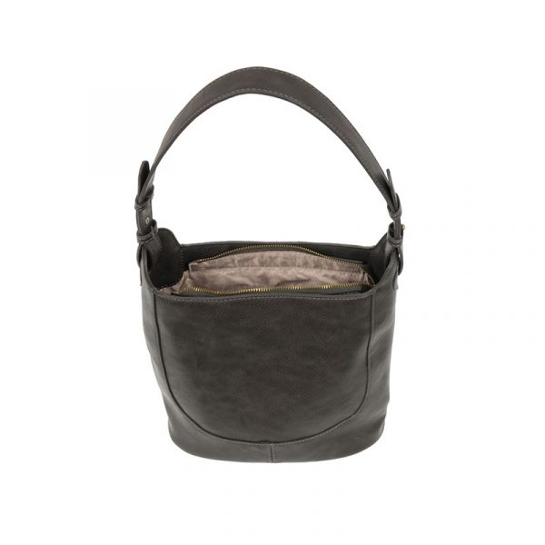 This bucket bag has got you covered with its soft, vegan leather design and adjustable strap. Easily carry all your daily must-haves with its top zip closure.